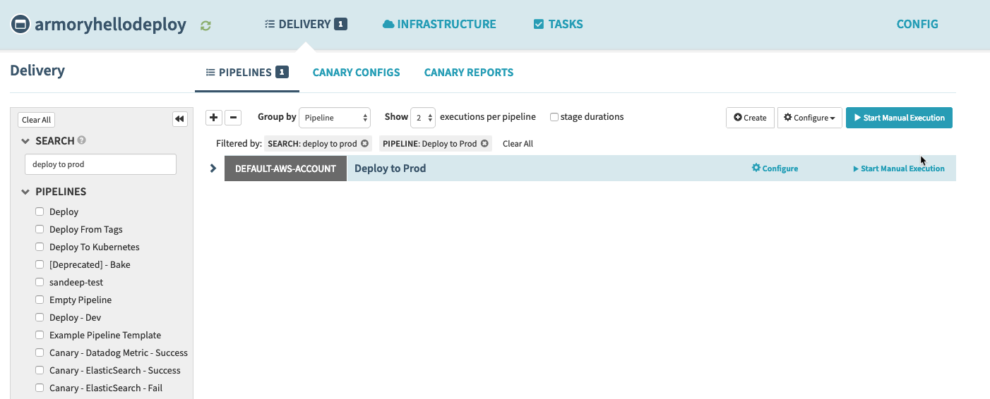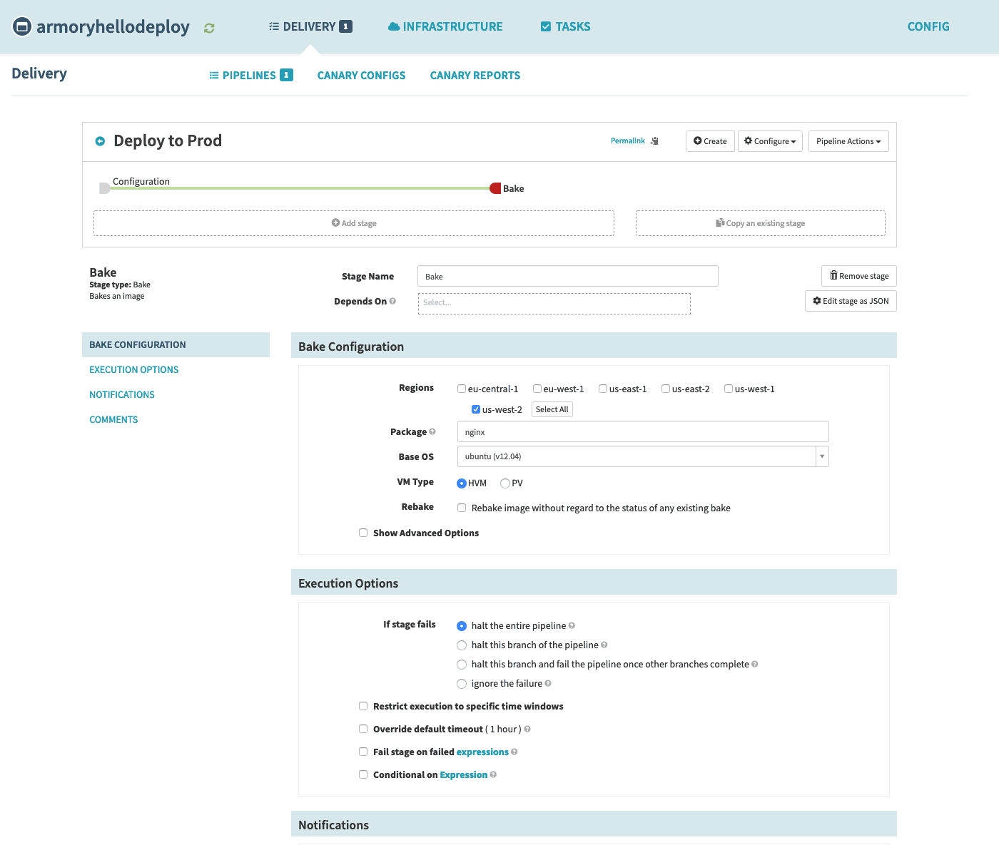 Navigate to the configuration screen of the previously created pipeline from the Baking guide.
